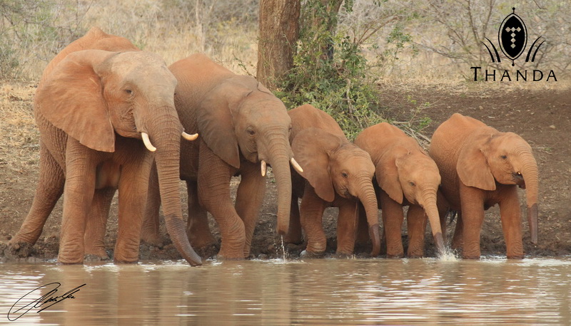 Well, normally it is the Thanda guests that have some nice drinks in the bush at sunset. But today we were very lucky to see an Elephant breeding herd having their drinks at the largest waterhole on Thanda just before the sun set.