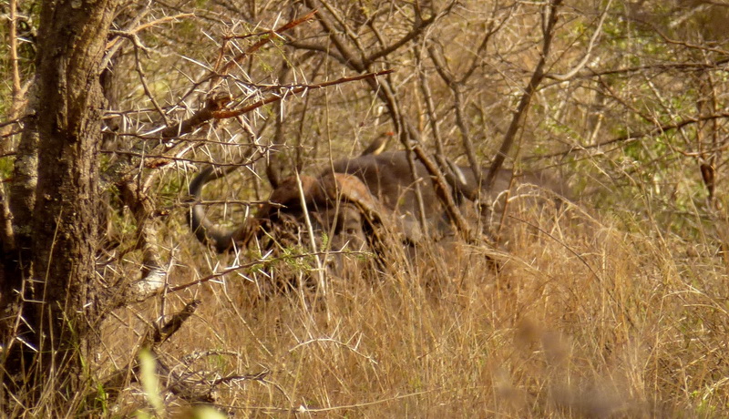 Then we “bumped” into another bull only 15 meters away from us. He took flight and we extracted to a save location. On the way back to the camp another group of “Dugga Boys” spotted us and chased us across a dry riverbed. We had to take a longer route to get back to the camp. Enough Buffalo for one day – up close and personal!
