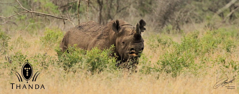 Last night I had my first Black Rhino sighting on Thanda. Bheki, my tracker, spotted this beautiful animal thirty meters from the road. For a few seconds one could almost see a pendulum swinging in its brain “fight or flight … fight or flight …”. It selected flight and moved away fast into the bush. A very brief, but very special sighting.