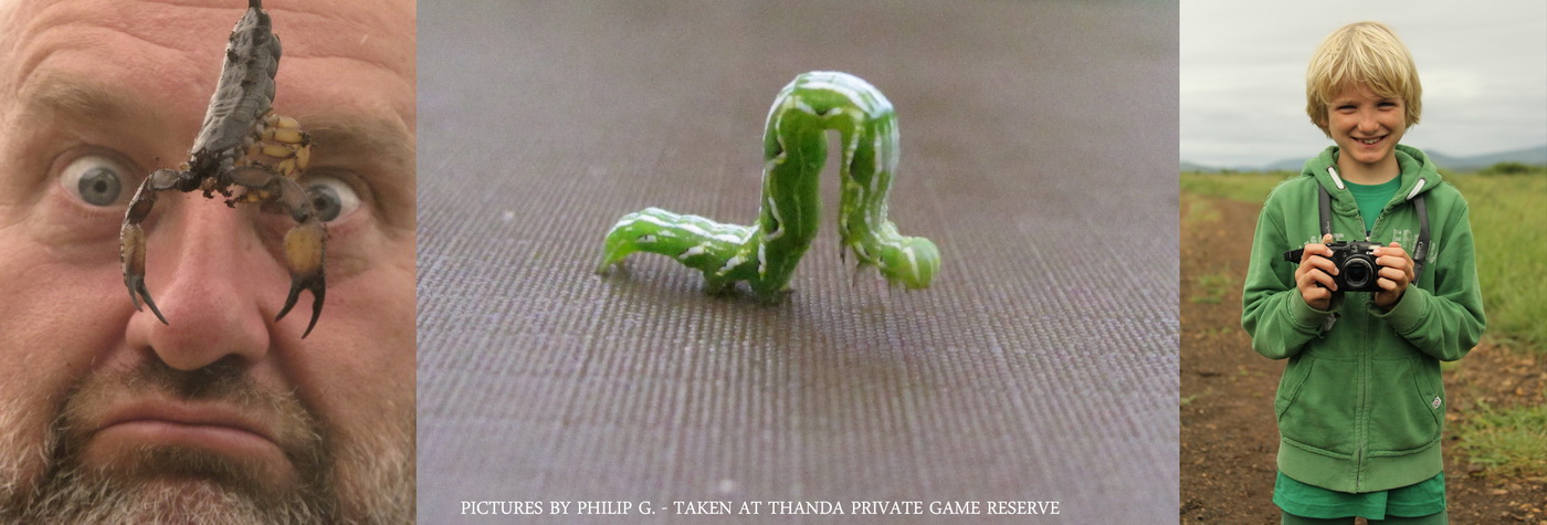He, his two brothers and his parents enjoyed the stay very much and Philip sent me two of his pictures. I am very proud to feature in one of them (even if it is with a bit of a funny face looking at a scorpion – but do not worry this one is quite harmless :-)).