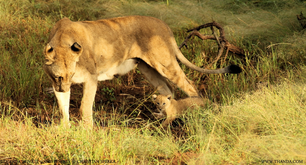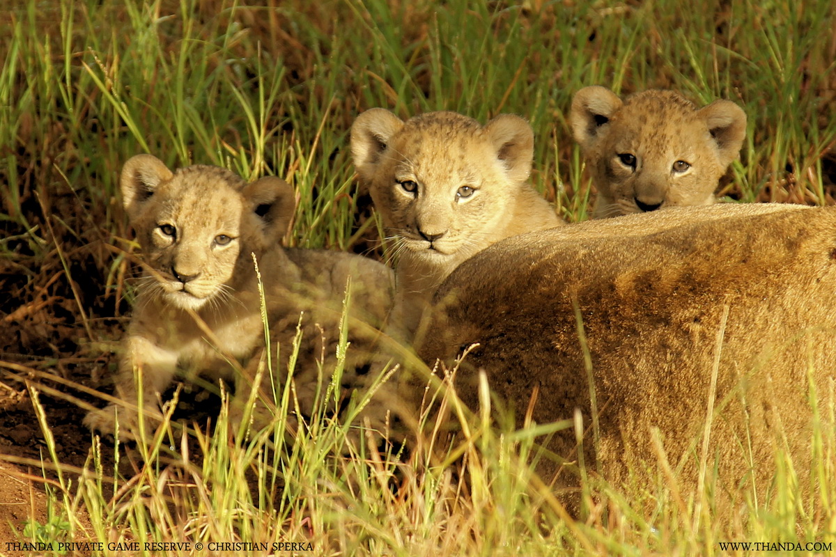 Mum kept enjoying the morning sun as we left the scene. My guests, Bheki and I were very happy. We were the first humans to set eyes on these beautiful little cats – the three newest members of the Thanda Lion family.