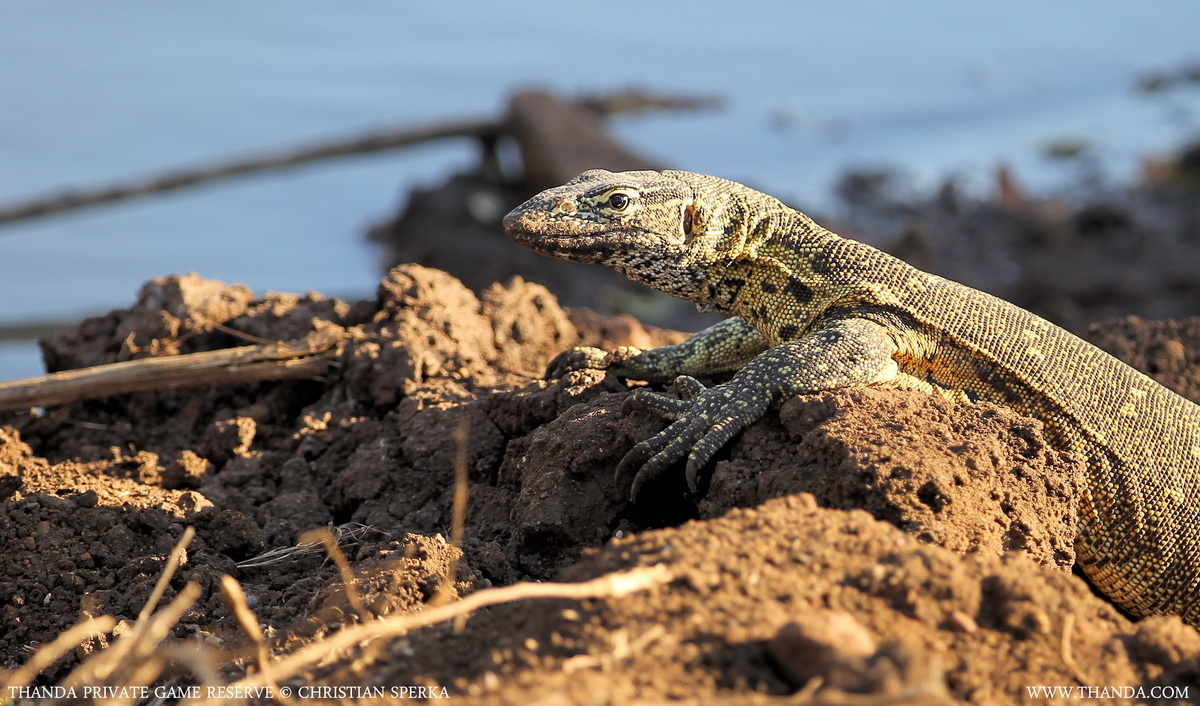 This Water Monitor Lizard was enjoying the sun at Thanda’s largest waterhole. These intelligent reptiles are very shy and usually disappear quickly into water or high grass as soon as one approaches.