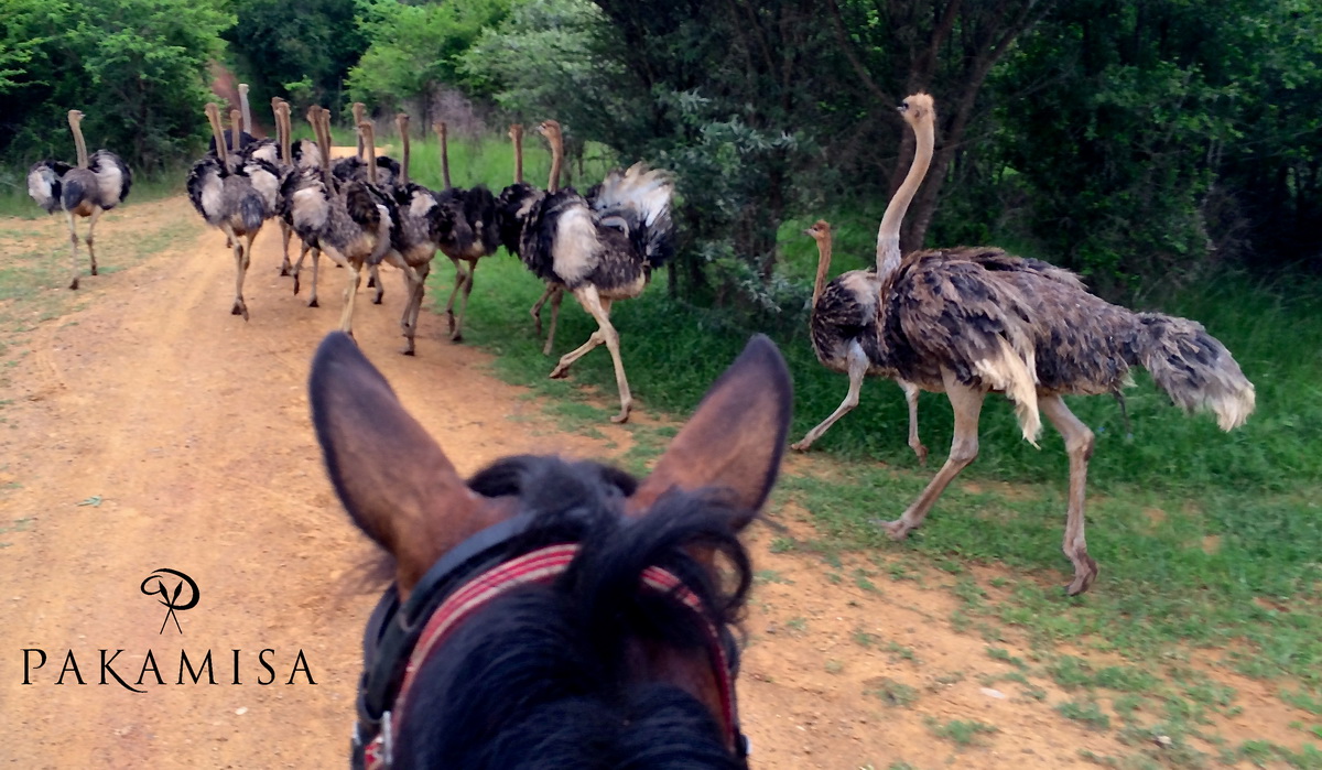 Four months old keeping up with the horses – At one year of age, ostriches weigh approximately 45 kgs (99 lbs).