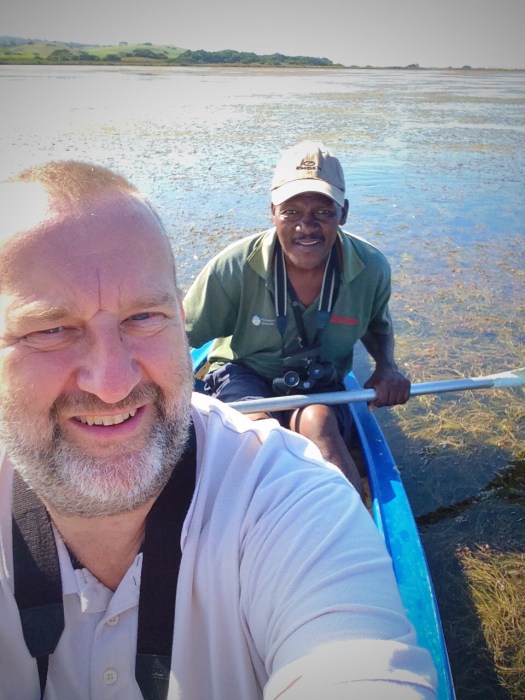 This picture shows me and my guide (His name is Comfort) in a canoe on the Amatigulu River. Amatigulu is also the name of small game reserve on the Indian Ocean coast (between Durban and Richards Bay).