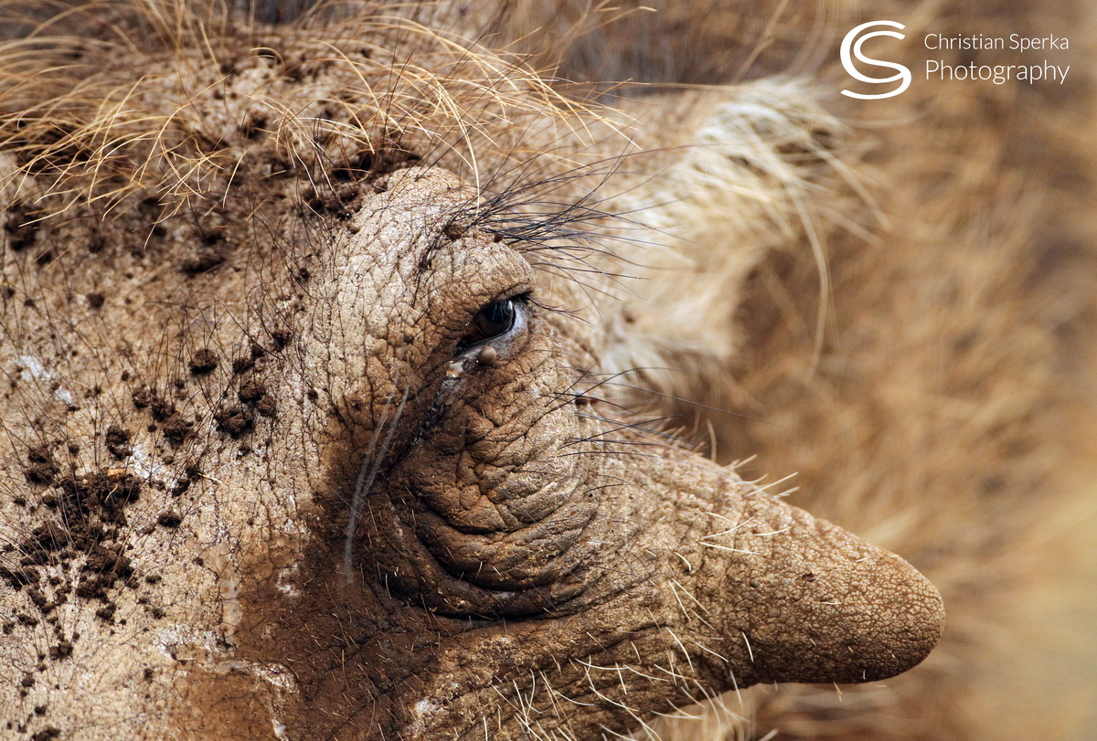 A male Warthog at Mkhombe, Zimanga Private Game Reserve’s morning-light-reflection-pool-hide.