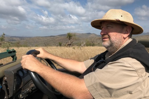 … Me on game drive with my Green Mamba 1 – I love every minute 🙂 – Picture by Warren taken during our last game drive together before he exchanged the rolling hills of Zululand for the rolling hill of Scotland!