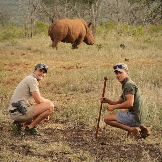 Rhino Monitoring – Occasionally  I get to spend some time with Thanda Safari’s Rhino Monitors Daniel and Kyle – Here I caught them on camera with one of their charges!