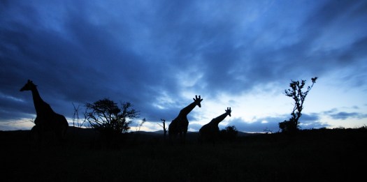 Nautical Twilight – During this period after sunset everything under the horizon is completely black. I was lucky that the Giraffes were part of the horizon and that they stood still for this long exposure.