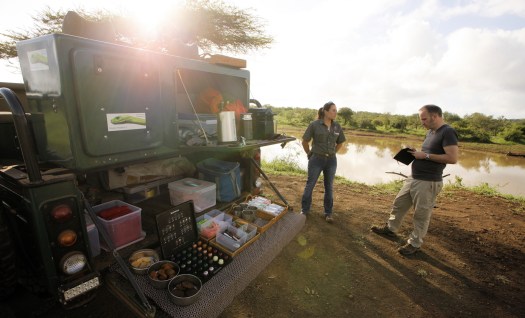 Cappuccino Time! – Thanda’s Wildlife Coordinator and a Journalist from Singapore were having a lively discussion during a morning coffee stop. They also enjoyed the selection of Nespresso coffee on the Green Mamba 1.