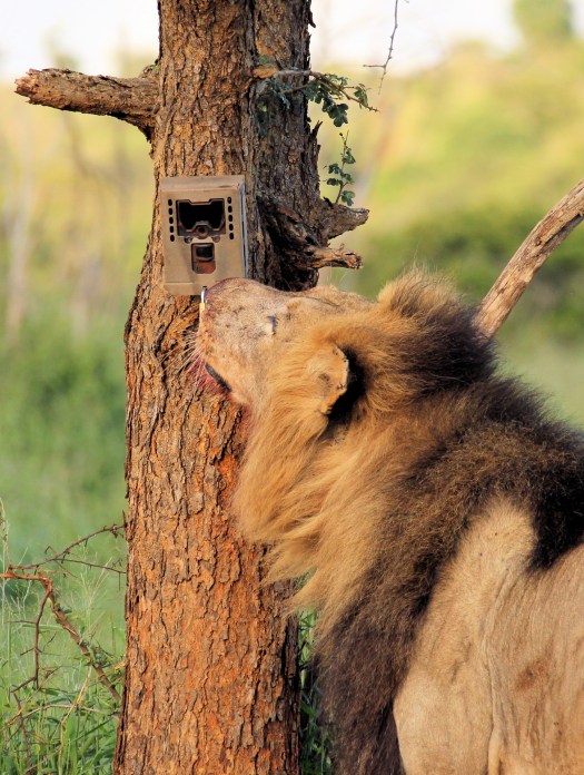 Smell the Trap – Shikondlakondla was very interested in a camera trap which was mounted next to a Buffalo carcass.