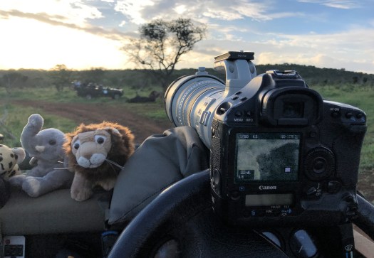 The cute ‘Big Five’ – Whenever I have small children on my vehicle I take the Big Five as plush toys along on drive. The little Lion sat quietly next to my camera as I took pictures of the real thing!