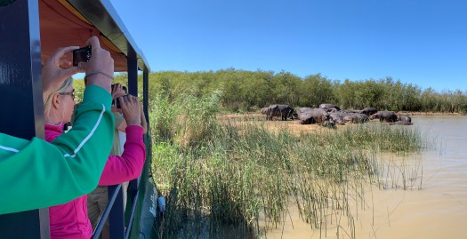 For day 3 of our safari experience an all-day excursion into iSimangaliso Wetland Park was on the schedule. After a morning Hippo and Croc Cruise on Lake St.Lucia and lunch at the Ski-Boat-Club – overlooking the estuary and the sand-dunes of the Indian Ocean – we returned through the western shores part of the park to Thanda Safari.