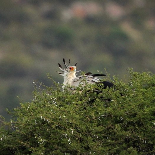 Unlike most birds of prey, the Secretarybird (Sagittarius serpentarius) is hunting its prey on foot, usually in pairs, stalking through the habitat with long strides.