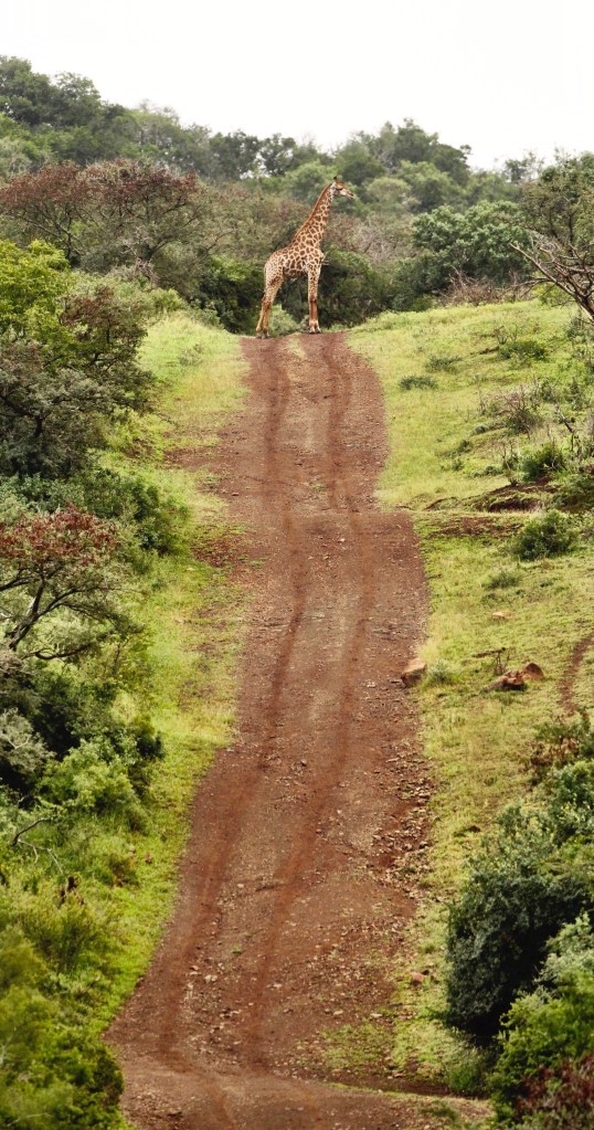 As I looked down the road ahead during yesterday’s game drive I got this interesting shot of a large male Giraffe.