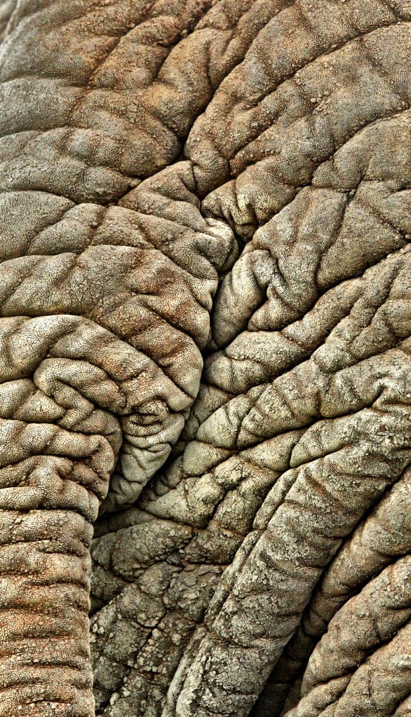 This picture is a closeup (taken with a 70mm lens) of an Elephant bull’s skin as he was passing in touching distance. It was exhilarating and calming at the same time to have these huge creators so very close.