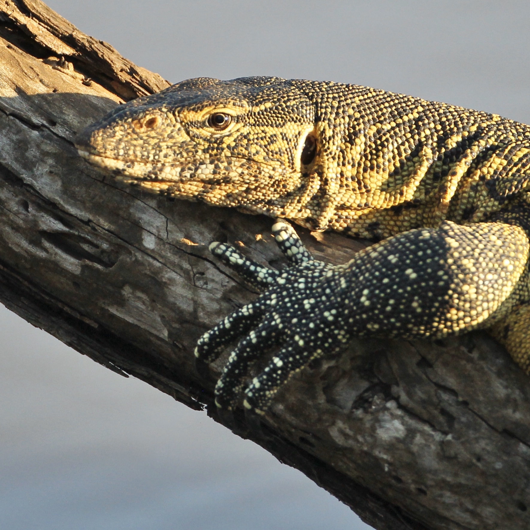The picture for this morning is of a Nile Monitor enjoying the evening sun. They are also called African Small-Grain Lizard or Water Leguaan.