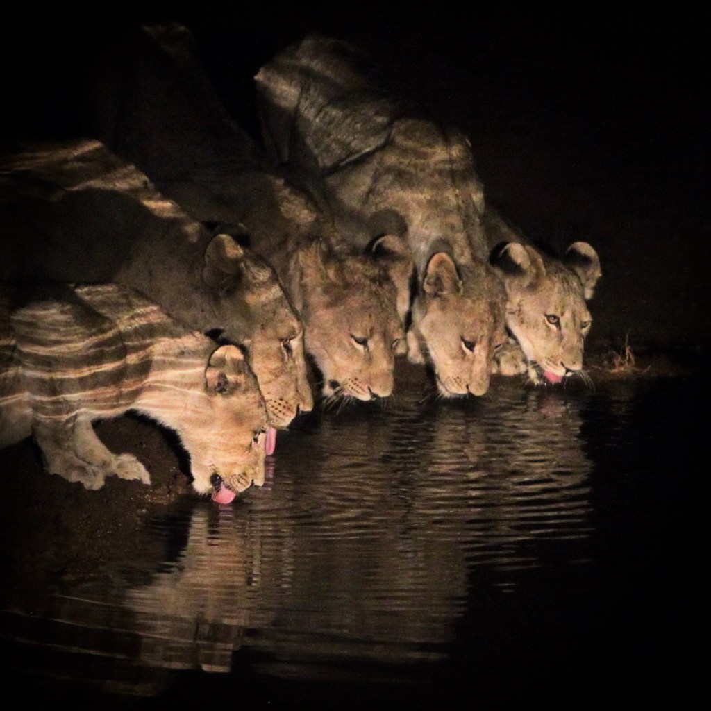 Sorry, today’s picture is a bit late: Lions having a nigh time drink!