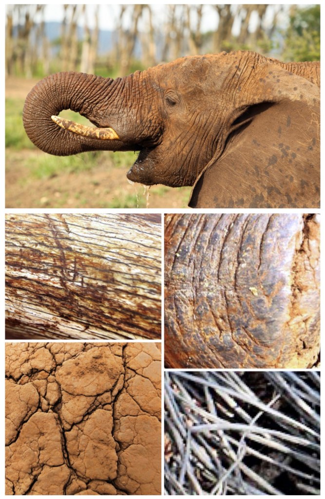This morning I asked of which animal I took the detail pictures in the collage. The correct answer is an Elephant. And the details are: Ivory Tusk, Toe Nail, Foot Sole and Tail Hair.