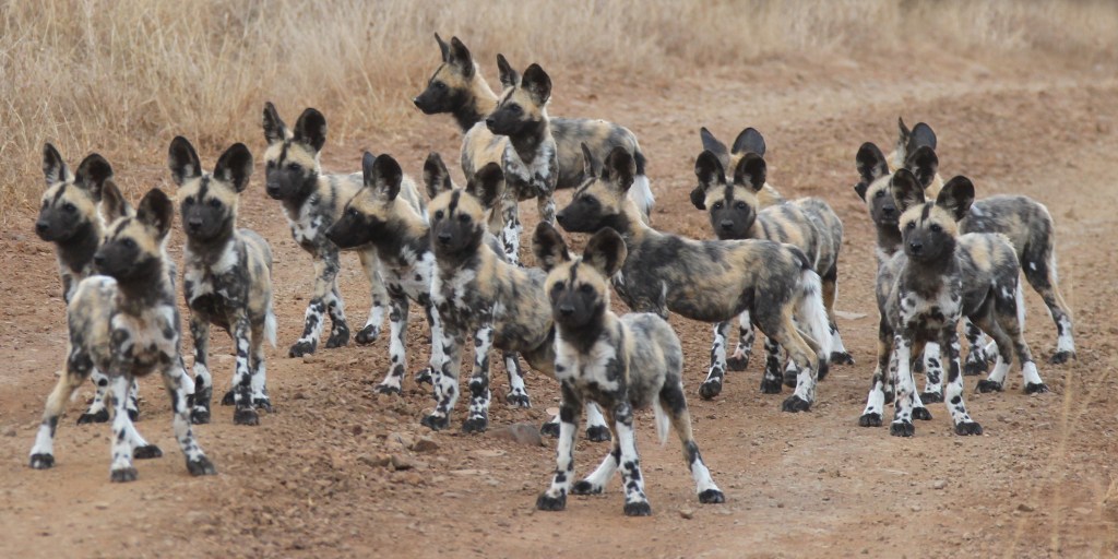 It was a long time ago when I took this picture of 15 cute Wild Dog puppies. Whenever we tracked Wild Dogs in the past we could smell them before we could hear them or see them. They are cute, but very smelly 😊