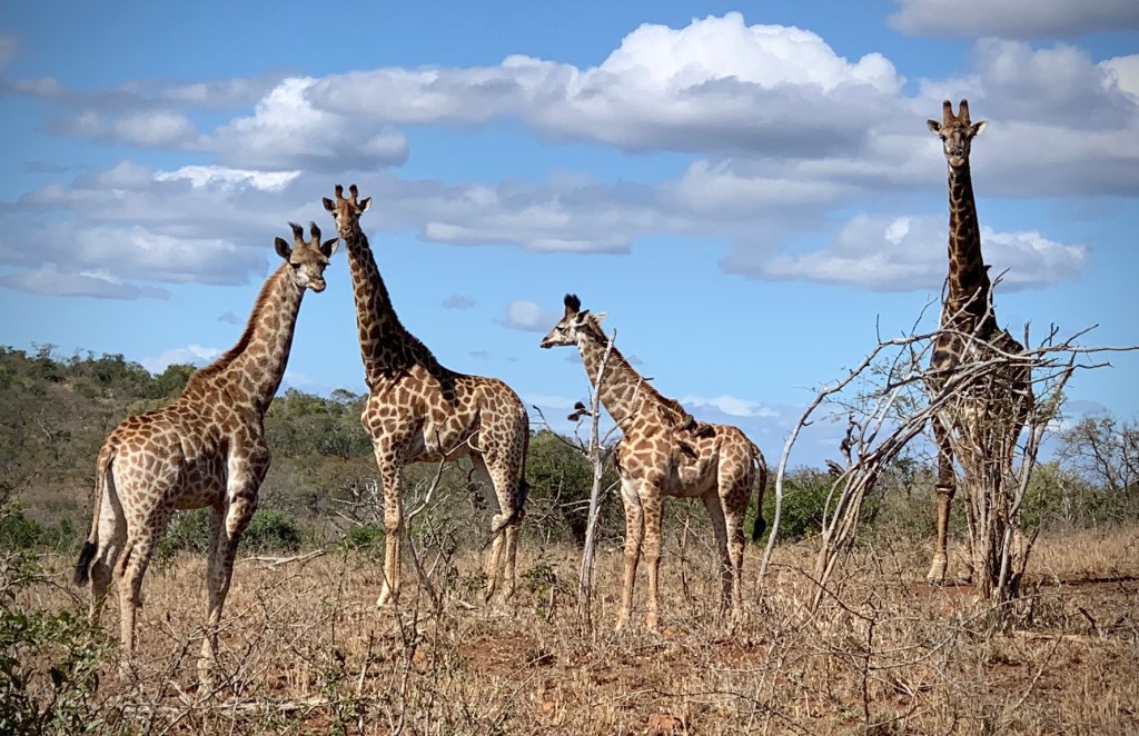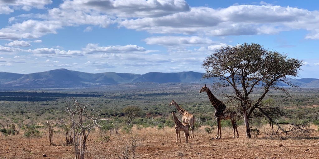 As I drove back home after a photo lesson this afternoon this beautiful scenery presented itself. A Giraffe family in the foreground and the Lebombo mountains as a backdrop in beautiful winter light. Thanda at its best!
