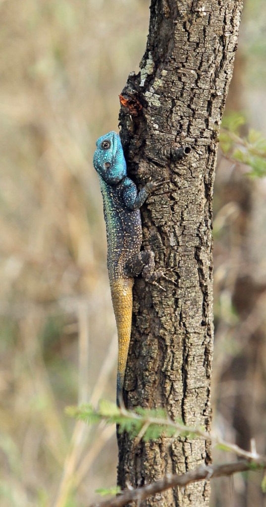Male Black-necked Agama intensify their blue color if they are excited 😊 I love the strong colors on this specimen.