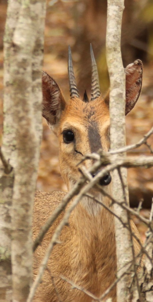 During this morning’s game drive this small Common Duiker had a good look at us through the bushes. Most of the time one only sees the back side of these fast, shy, little creatures.