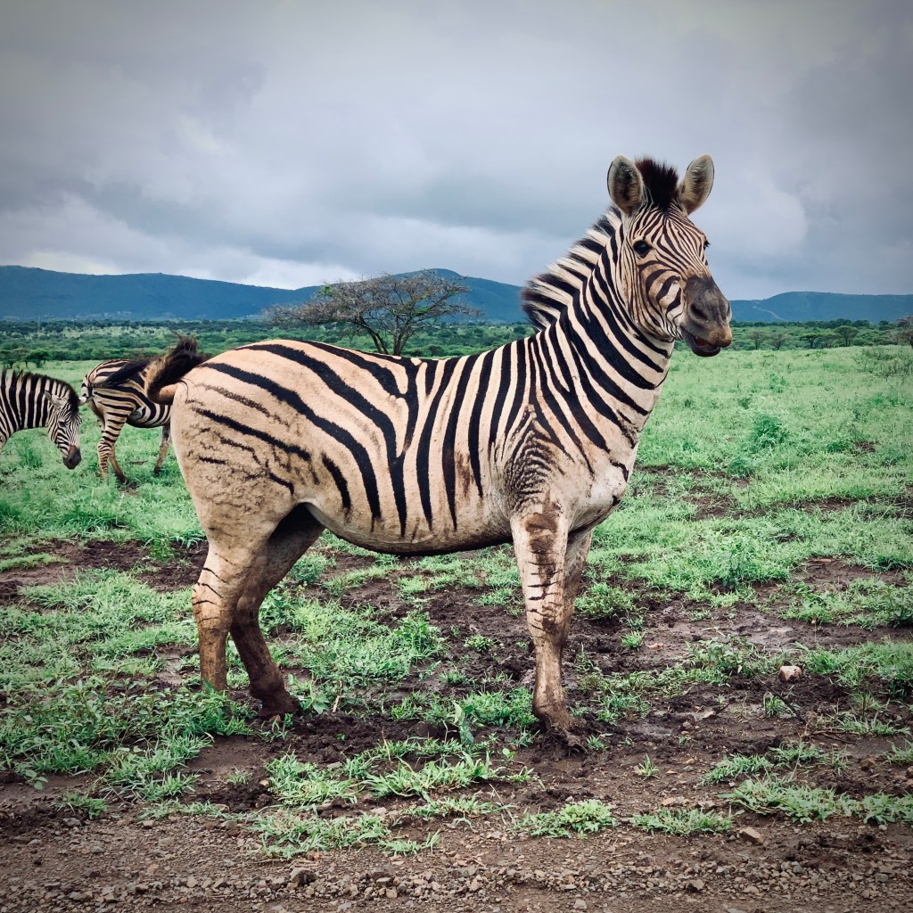 We had over 100mm of rain in the last three days at Thanda Safari. Some of our large mammals – like this Zebra – looked like they felt a bit sorry for themselves walking around with muddy hooves on slippery grounds. So far we had more than 400mm since the beginning of the year.