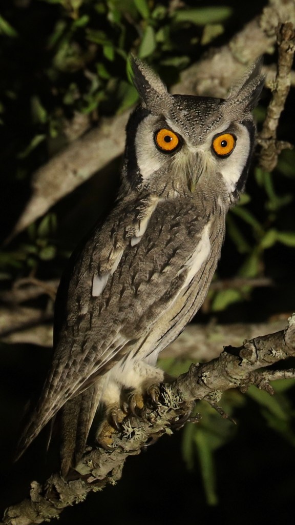 This is my favorite picture from this afternoon’s game drive. My Thanda Safari Wellness Weekend guests were fascinated by the beautiful orange eyes of this Southern White-faced Owl.