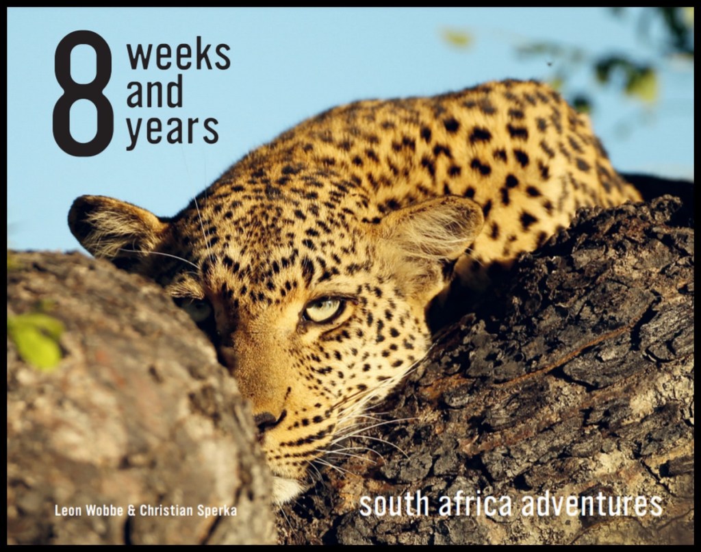We created a coffee table book about Leon’s 8 weeks and my 8 years in South Africa. It includes some of our best pictures and a few stories about our South African adventures. I am very proud and grateful that I was able to provide my pictures and stories to the book and I enjoyed very much creating this ‘little piece of South African art’ together with Leon.