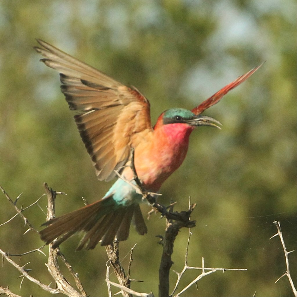 This Southern Carmine Bee-eater was hunting when I took this picture.