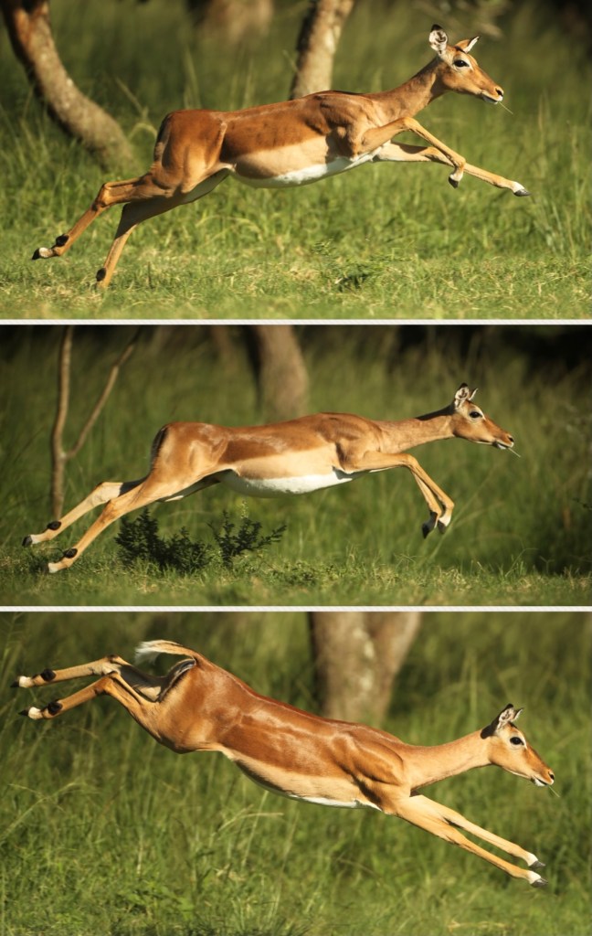 An ‘airborne’ Impala female in sprinting mode at Pakamisa! As with most herd-prey-species good photo opportunities occur once the flight instinct kicks in. If one of them starts running for whatever reason the others will follow.