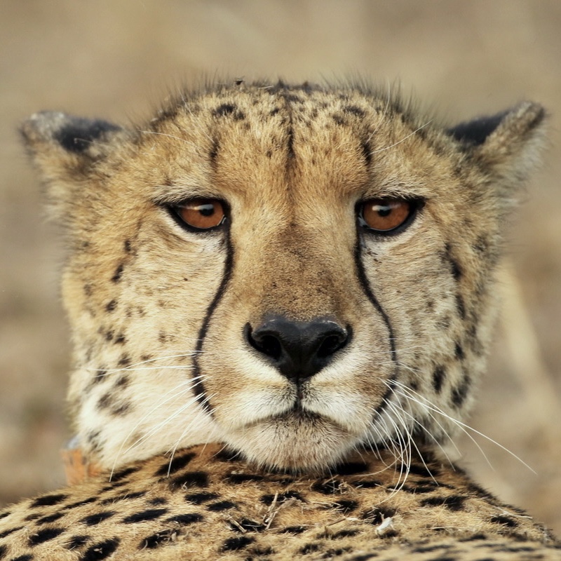 It is the only cat fully adapted for speed instead of power. It cannot roar and misses other big car traits. It is therefore classified in its own genus. I took this Cheetah portrait a few years ago at Thanda Safari.