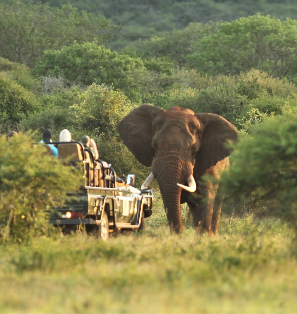 1. That is the reason why a proper game drive is led by a qualified field guide and not just a driver. Field guides have studied to identify gender and age, and they have learned to interpret the body language of these gentle giants. When it comes to the proper distance a good guide will rather leave too much space than too little. And should an unforeseen situation arise where an Elephant reacts nervous or even aggressive then an experienced guide will know how to act in such situations. As always in life things can go wrong, but if the field guide does his job right then the risk of anything serious happening is greatly reduced. It is the same as with a ‘reckless driver breaking the rules’ versus an ‘experienced driver observing the rules’. Things may go wrong for both, but the probability of this happening differs based on their behavior.