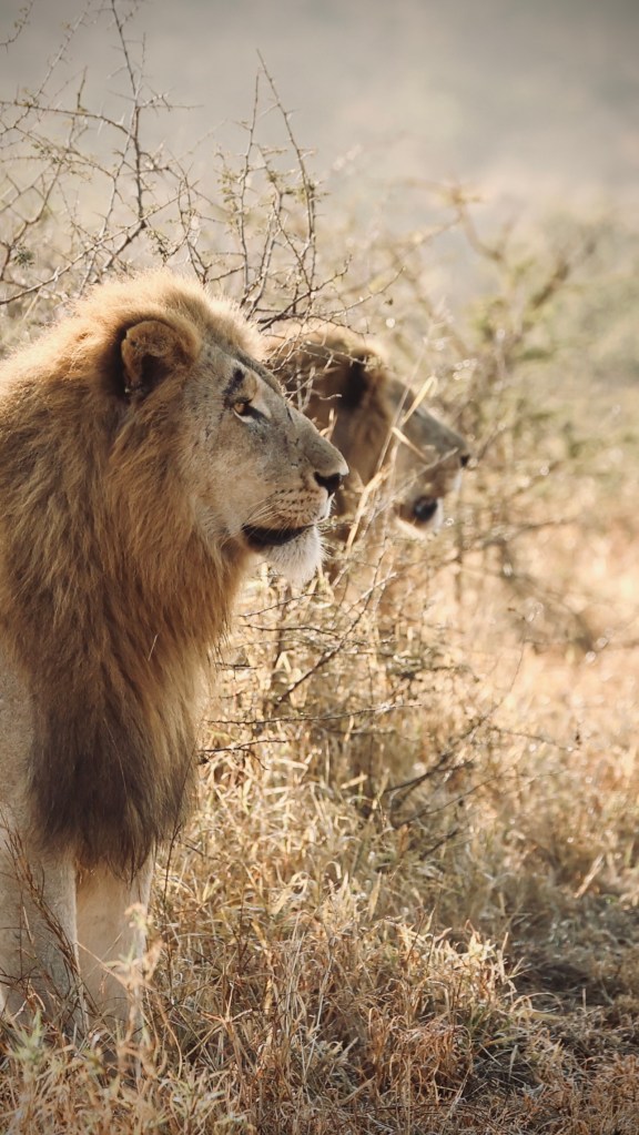Yesterday morning our two dominant male Lions were scanning a valley and following a scent trail in search for two young females. We had tracked the them for a few kilometers when we found them on top of a hill displaying themselves in all their ‘majesty’. But they never caught up with the ladies on that morning.
