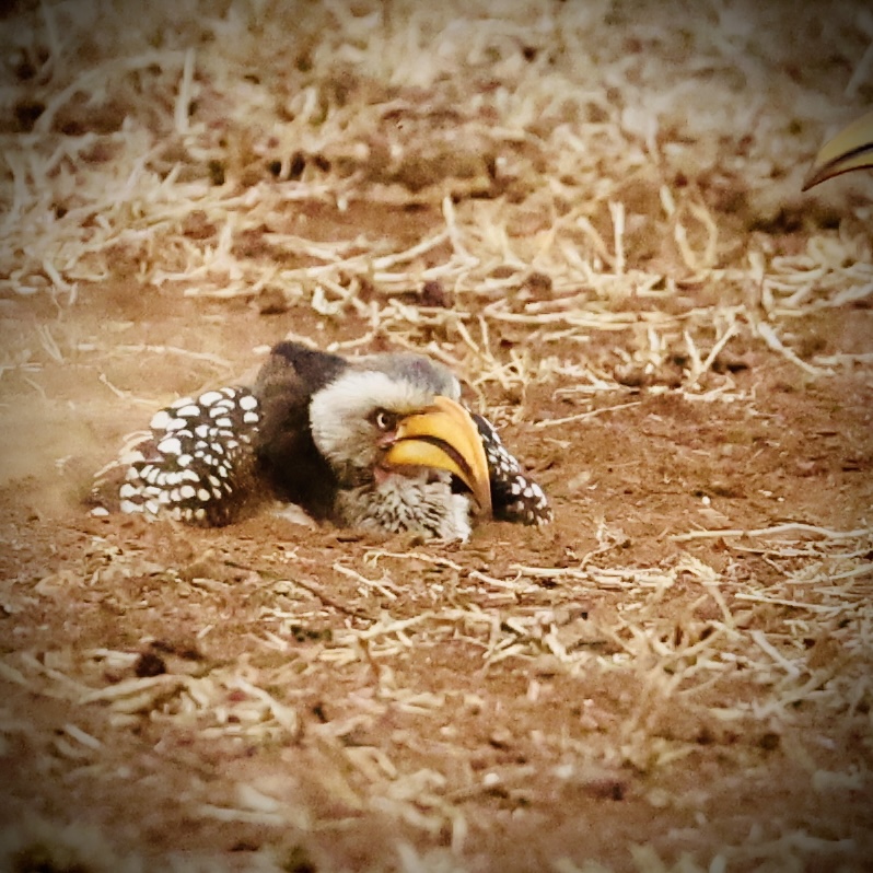 This Yellow-billed Hornbill had a very serious expression when it took its afternoon sand bath!