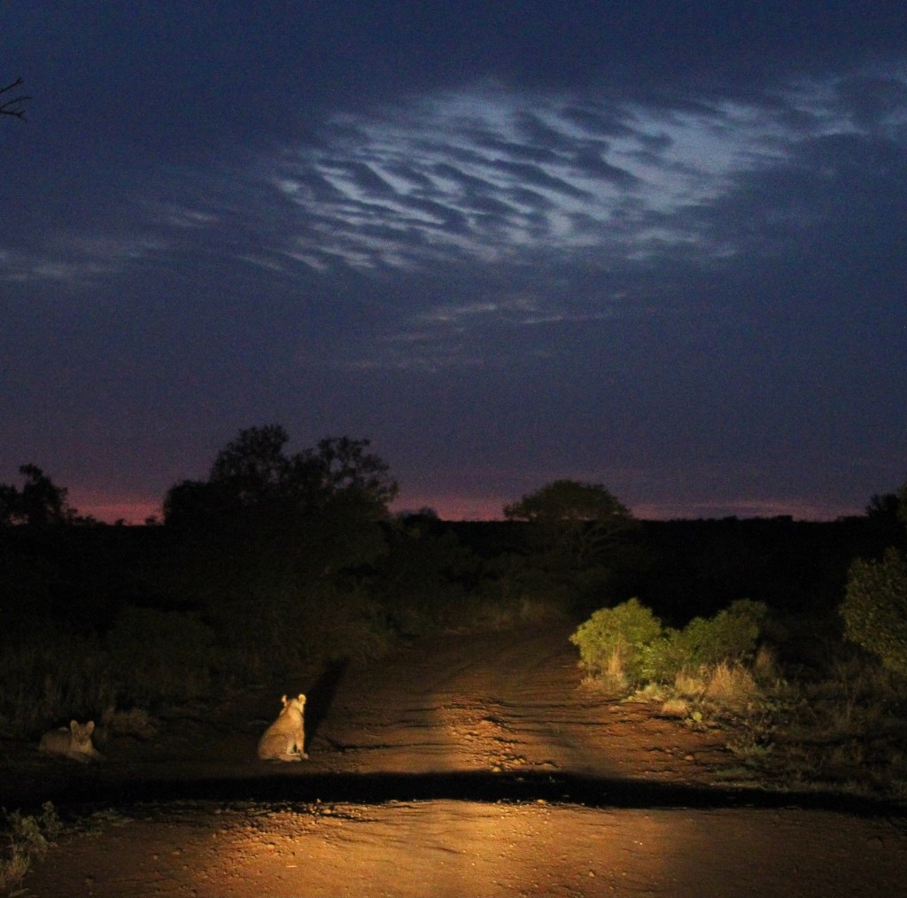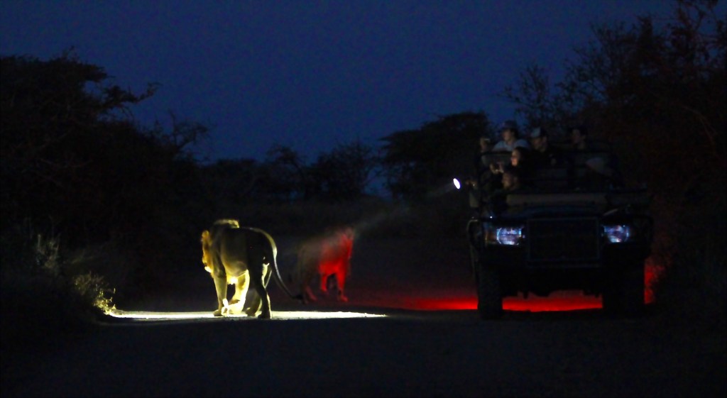 It is very exciting when Lions pass a safari vehicle during a night drive.