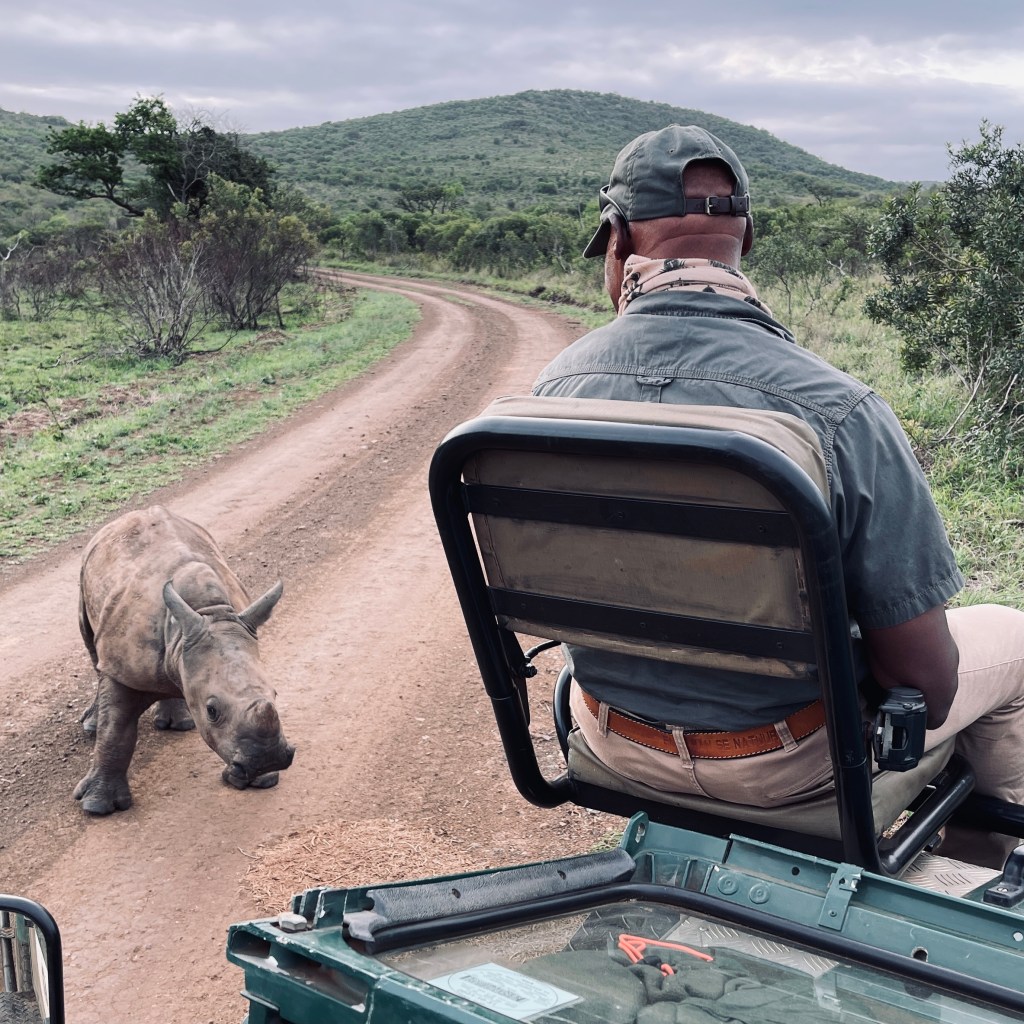 He got quite upset when neither the vehicle nor my tracker Bheki nor any of us in the game viewer reacted. After a few jumps up and down he sprinted back to his mum. The female Rhino did not even turn a head towards us and was perfectly relaxed as her youngster got to learn that our vehicles are no threat.