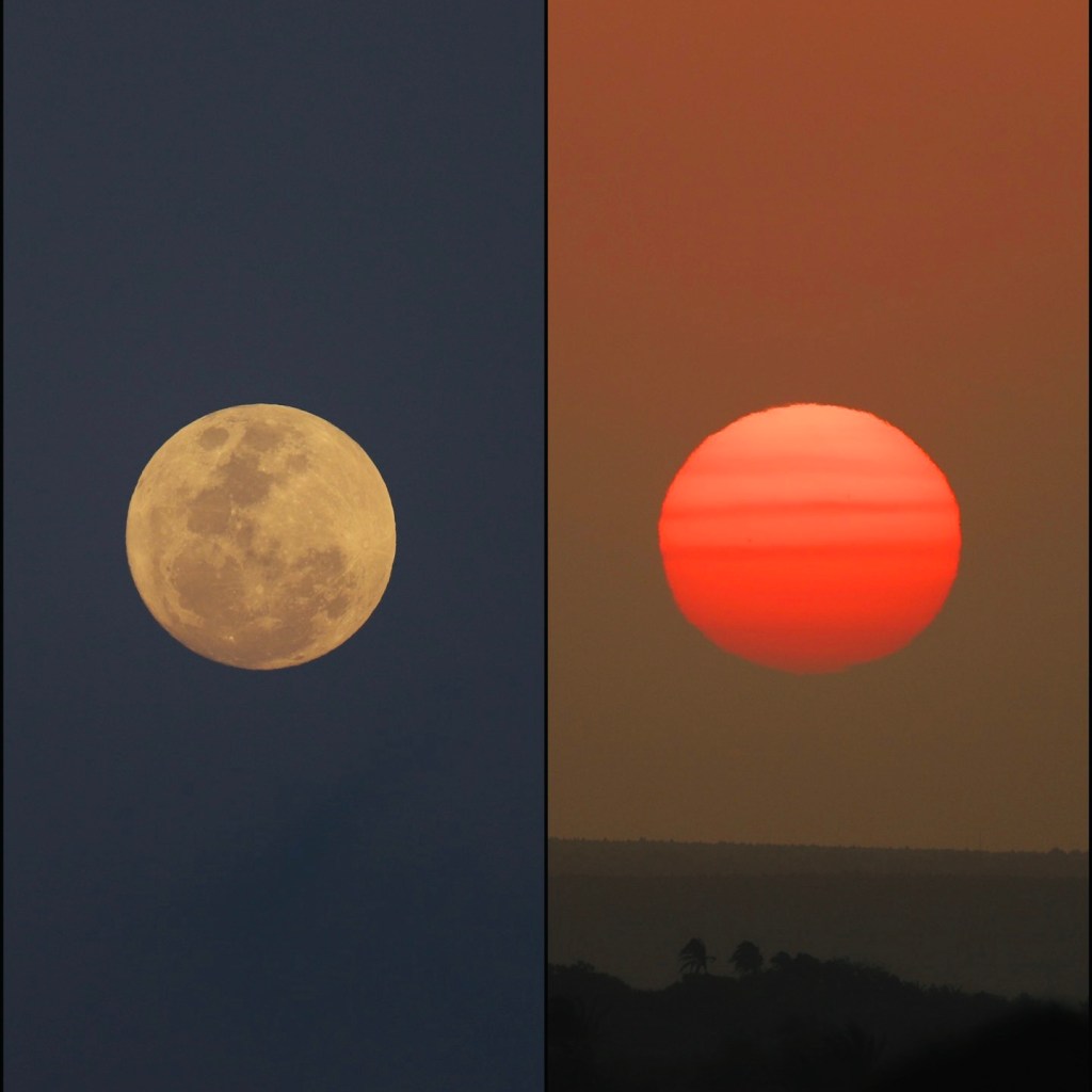 This evening’s setting sun and rising moon photographed at the same time (iSimangsliso Wetland Park).