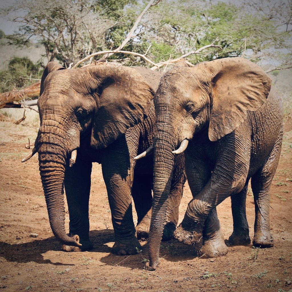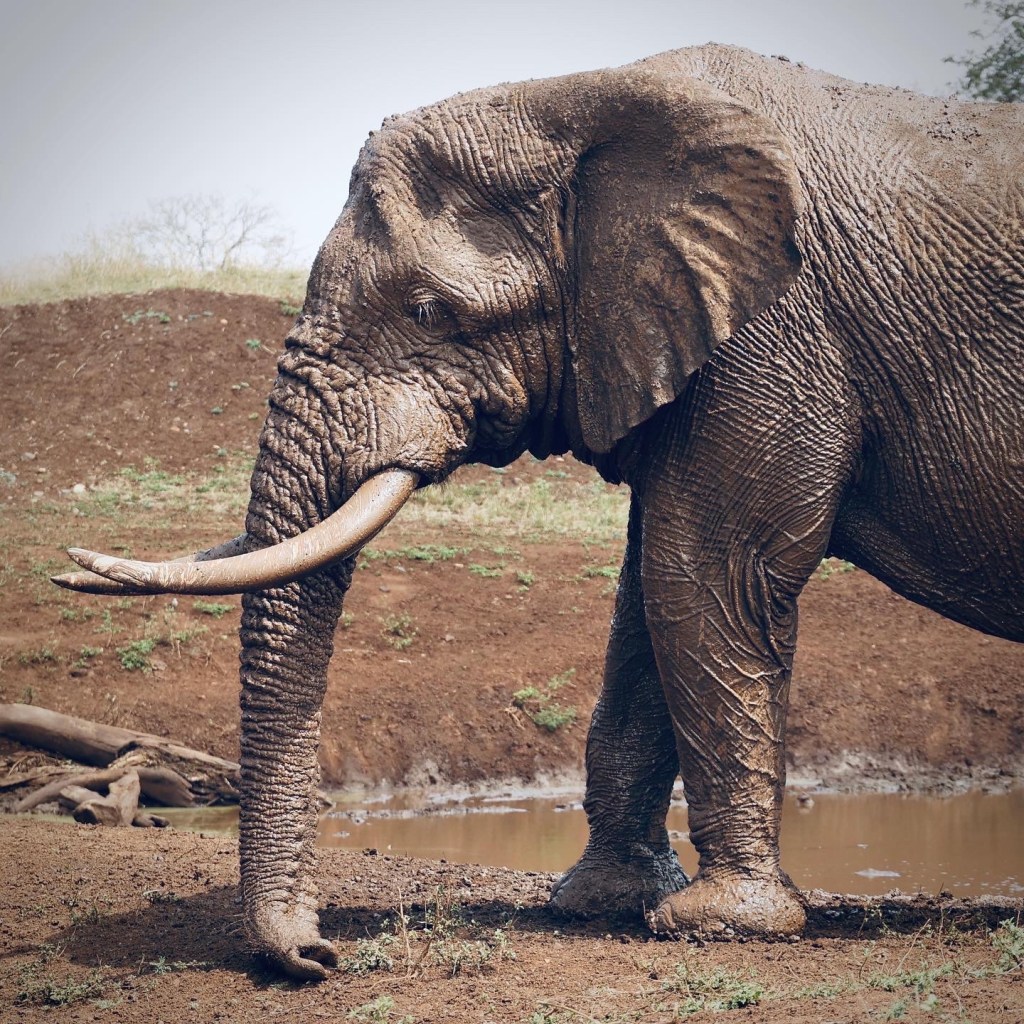 A few hours ago I saw three Elephant bulls approaching the waterhole in front of my home. I drove down to them to take some picture of their mud-bath. Only a few meters away they ‘tusked’ more mud up to throw it onto themselves. I love watching Elephants!
