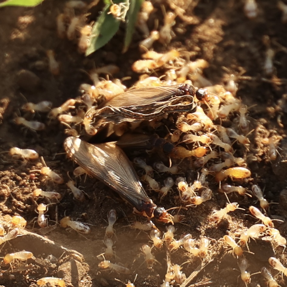 … being prepared by termite workers for their mating flight. They are also called flying ants (which they are not!). Most of these airborne termites (male and female) get eaten by birds and other grateful diners. The few that survive, meet and mate with another lucky flying termite of the opposite sex will create a new termite colony as Kings and Queens!