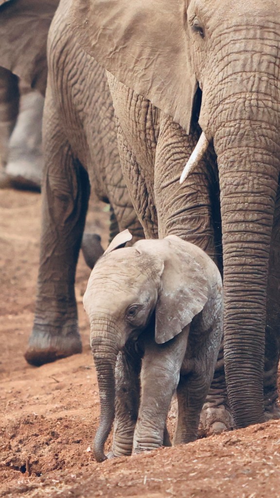 This little Elephant calf does not have full control over its trunk yet. The trunk of an adult Elephant is a prehensile tool of incredible dexterity and strength. But the little ones just have a floppy nose. While they are getting all their fluids from the mother’s milk they do not yet need the trunk’s syringe function for drinking water. As they get a bit older they learn how to use their long nose as a most versatile tool. I took this picture last night, as a large Thanda Safari herd drank and bathed at a waterhole. Mum and all aunties and older sisters were very protective of this little one.