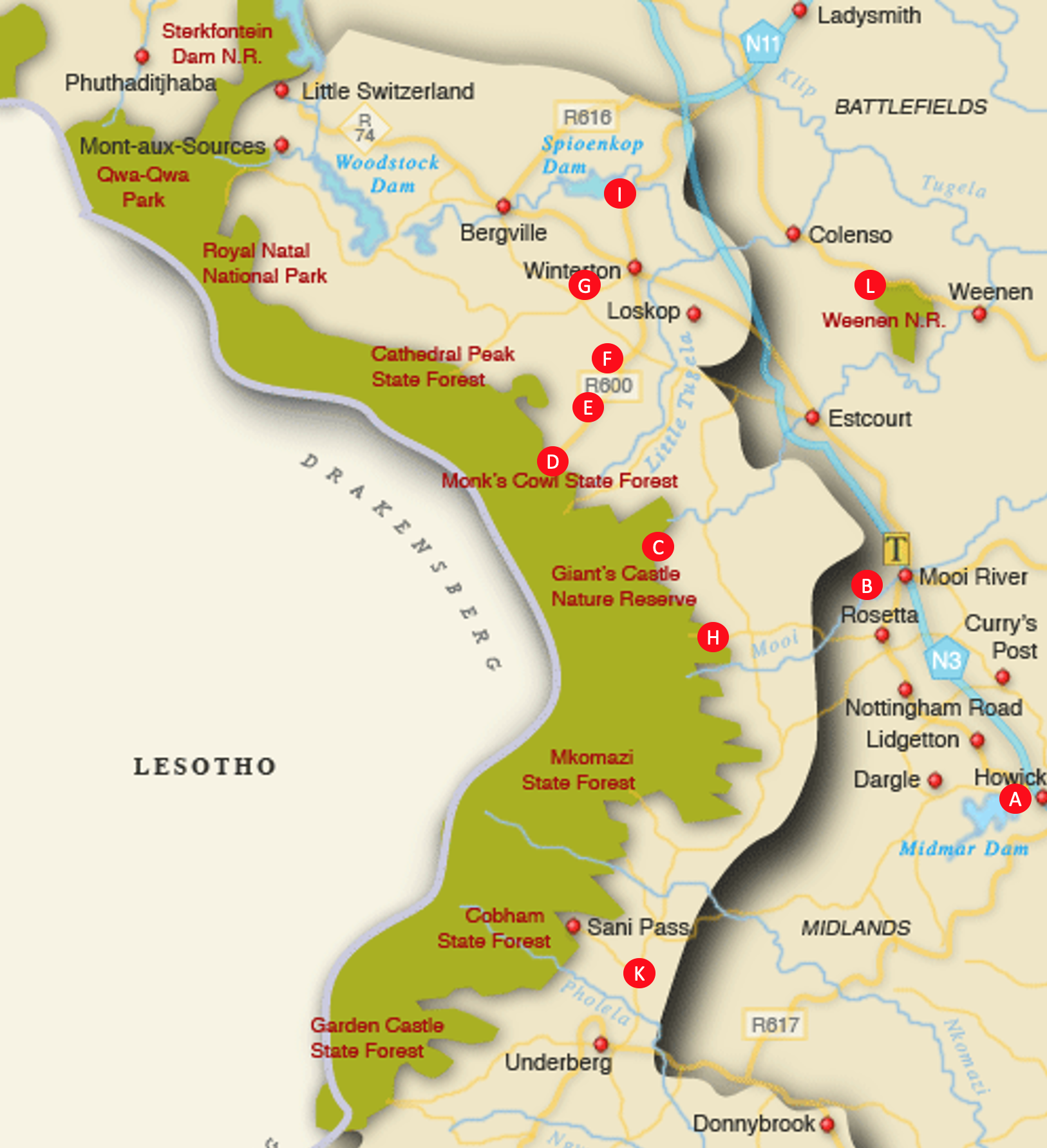 Below is a picture report for all the places I visited during this ‘fact-finding mission.’ I never travel anywhere with guests where I have not visited myself beforehand. On the way to ‘The Berg,’ I drove through the Midlands and looked at a few places there as well.