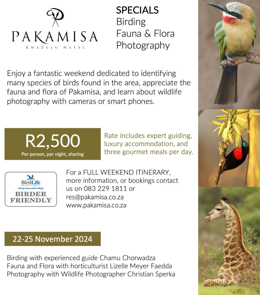 There are still a few places available for the next birding and photography weekend on Pakamisa (22-25 November).