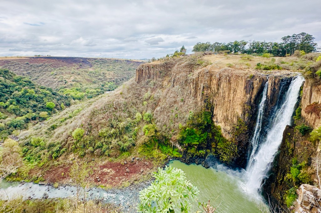 On our way from Durban into the Drakensberg mountains we stopped at the impressive Howick Falls, the fascinating Nelson Mandela Capture Site Museum, and had lunch at the famous Piggly Wiggly coffee shop in the Midlands. We stayed for two nights at the Dragonview Lodge in the Champagne Valley.