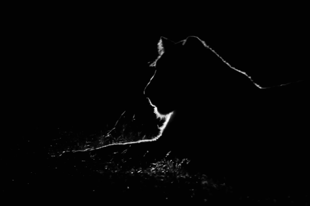 Topic: Young male Lion and his mother in the spotlight of a vehicle