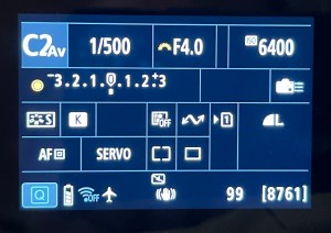 - C2 = ISO 100 | K6500 | Spot AF (C2) | Servo | Min shutter speed 1/500sec