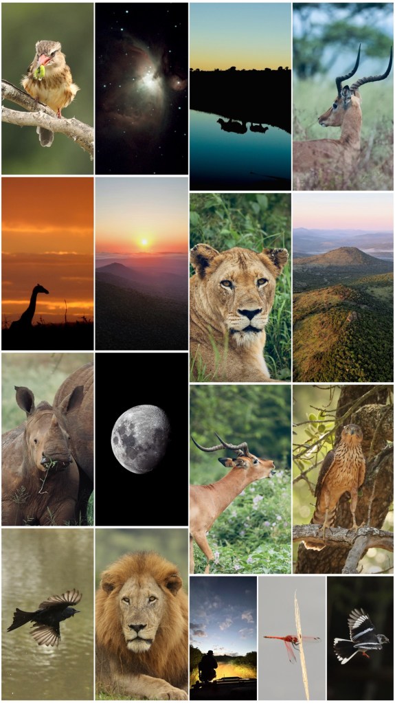 However, these lenses are also invaluable for capturing ‘long-distance portraits’ of mammals. Today’s picture collage showcases a few examples taken this past weekend at Pakamisa Private Game Reserve. The combination of a shallow depth of field and direct eye contact with the camera lens results in highly appealing portraits.