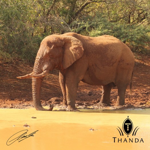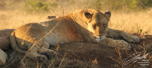 On the drive I ran into this Elephant bull at a small waterhole. He just had finished a “muddy”-bath and was resting from his labors. Looking at his size he could be my age, another gentleman in his best years!