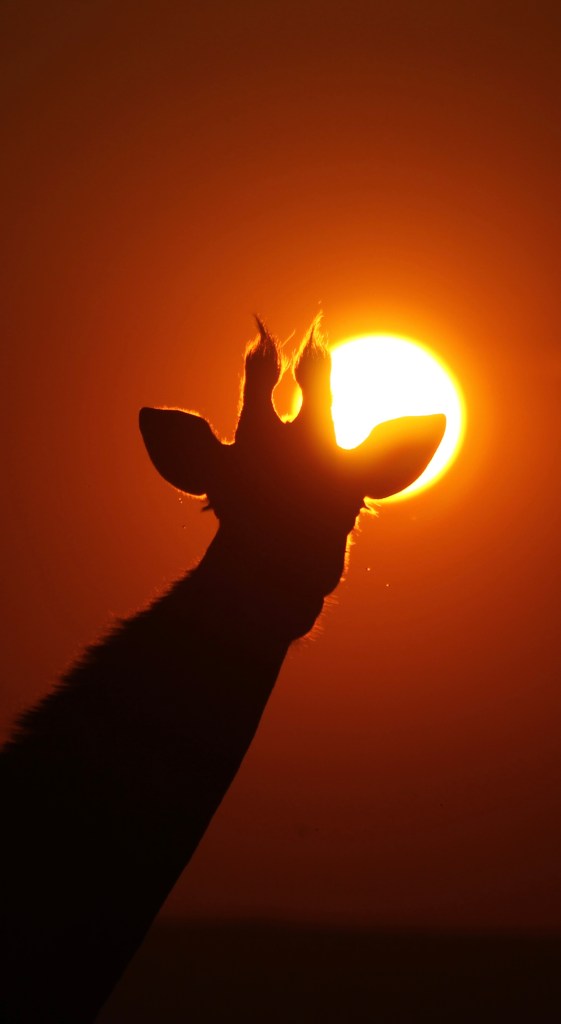 On the way home from yesterday evening’s game drive I took this image of a Giraffe silhouette in front of the moon. Twilight mood on Thanda!