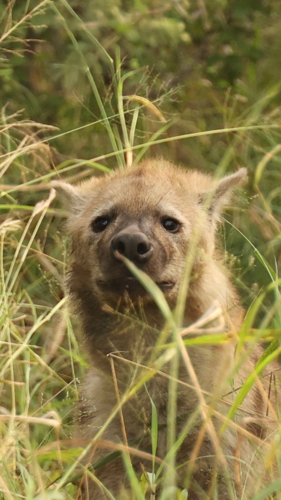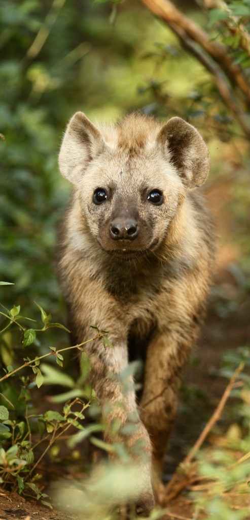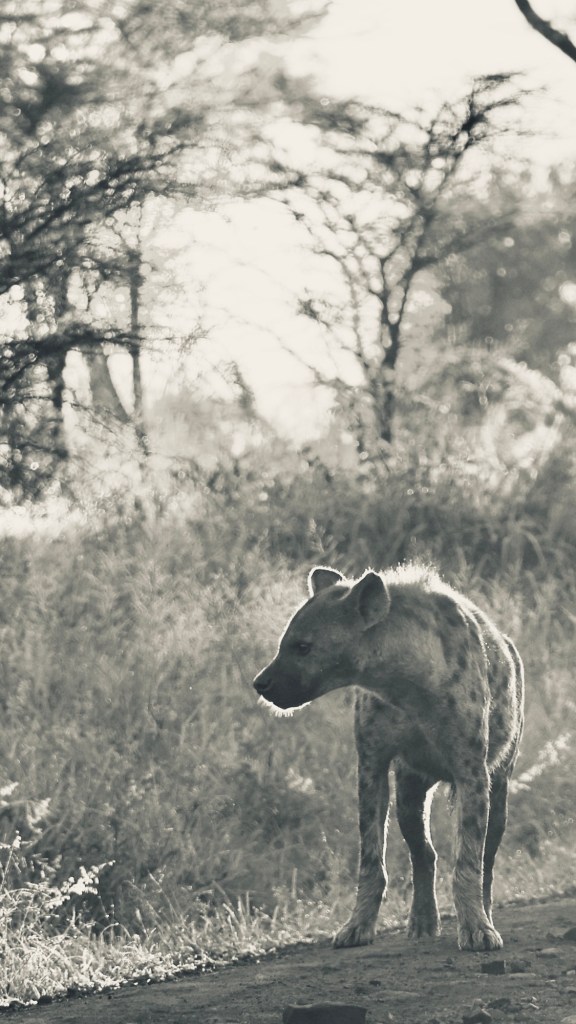 One can almost see this young hyena thinking: ‘I wish I could climb trees’; as she was watching a Leopard eating on an Impala carcass while lying on a branch. Leopards often drag their kills into trees and Hyenas often trail Leopards in the hope to steal the food before they get a chance to lift it to safety.